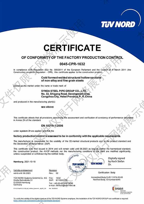 滄州市鑫宜達管道有限公司成立于2003年7月,坐落于滄州經濟開發(fā)區(qū),占地面積40萬平方米,注冊資金1.81億元,是集螺旋鋼管生產、防腐加工以及無縫鋼管、卷板、帶鋼等品類鋼材經營銷售于一體的工貿型企業(yè)。公司現有員工400多人,其中,中高級技術職稱的人員達120余名。 滄州市鑫宜達管道有限公司擁有9條螺旋鋼管生產線和3PE防腐生產線,可生產直徑219--3640mm,壁厚5.5--28mm,最高鋼級X100的各種規(guī)格防腐螺旋鋼管...